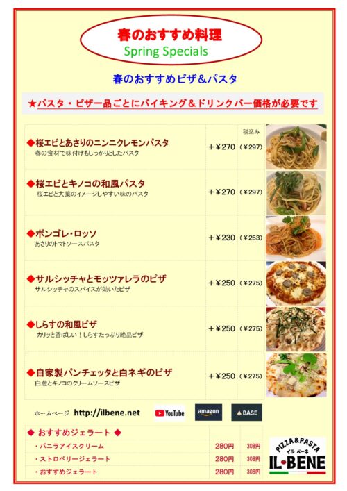 パスタorピザをご注文頂くと自家製バイキングを自由にお食事いただけます。